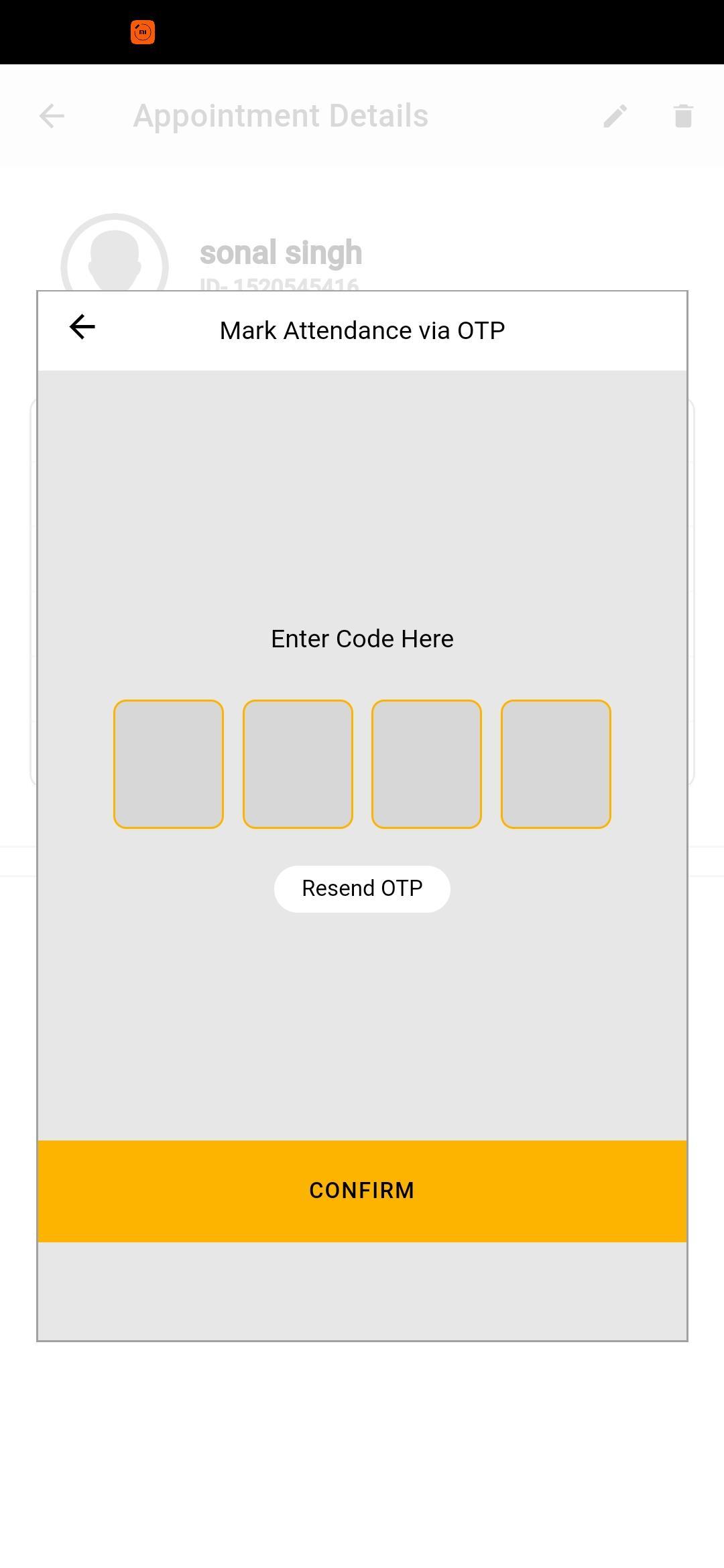- If the session owner selects mark attendance via OTP option, a pop up appears on the screen to enter the OTP.